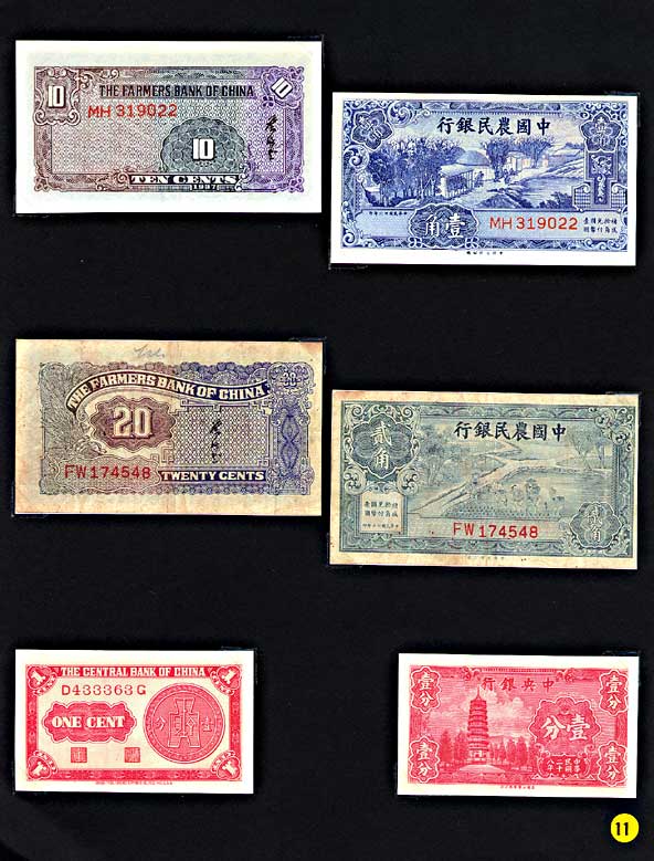 However, the first banknotes we used to buy our daily necessities, was the 1 Fen, issued by the Central Bank of China in 1939, and the 10 cents and 20 cents banknotes issued by the Farmers Bank in 1937 and 1939 respectively. All three banknotes are shown here on the right.