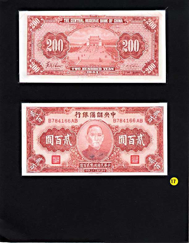 Two other banknotes, also issued by the Central Reserve Bank of China, are illustrated on the left. My aim in presenting this report was to make us remember the trials and tribulations we encountered by trying to stay abreast with the rapid change and fluctuation of the currency in the strange land.