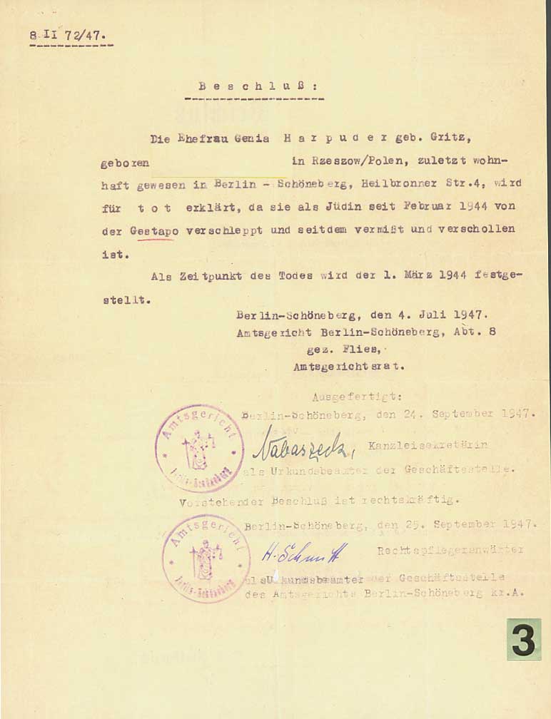 Holocaust. In Figure three we see such a letter declaring the person missing