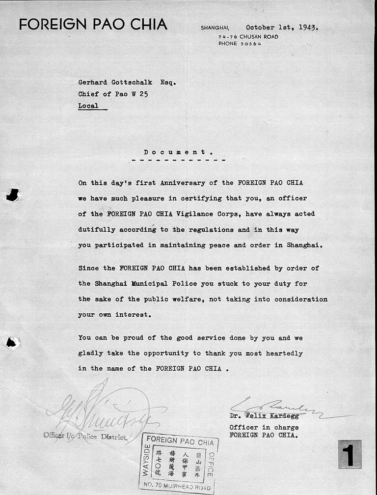 late Rabbi Fein. Rabbi Fein was a US. Chaplain, sent to Shanghai by General