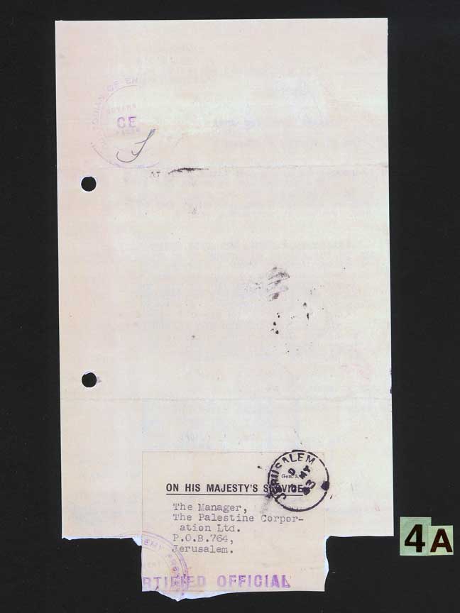 and addressed to The Palestine Corporation Ltd. in Jerusalem, states
